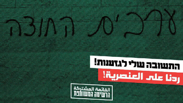 Die Gemeinsame Liste ist eine schallende Ohrfeige für die Rechte, die die arabischen und die demokratischen Stimmen aus dem Parlament entfernen will. Sie ist eine Reaktion auf die faschistische Offensive und die rassistische Politik im Land, die in einer Flut von antidemokratischen und rassistischen Programmen und Gesetzen, die grundlegende Menschen- und Bürgerrechte verletzen, und insbesondere die Gesetze in Bezug auf die Definition der Nation und den jüdischen Charakter des Staates[5].