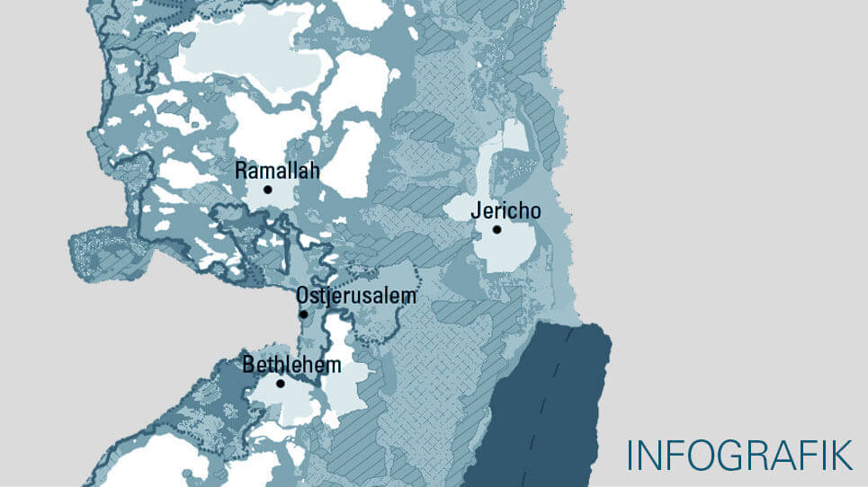 Die Infografiken basieren auf den Karten vom United Nations Office for the Coordination of Humanitarian Affairs (OCHA) for occupied Palestinian territory (oPt). OCHA oPT